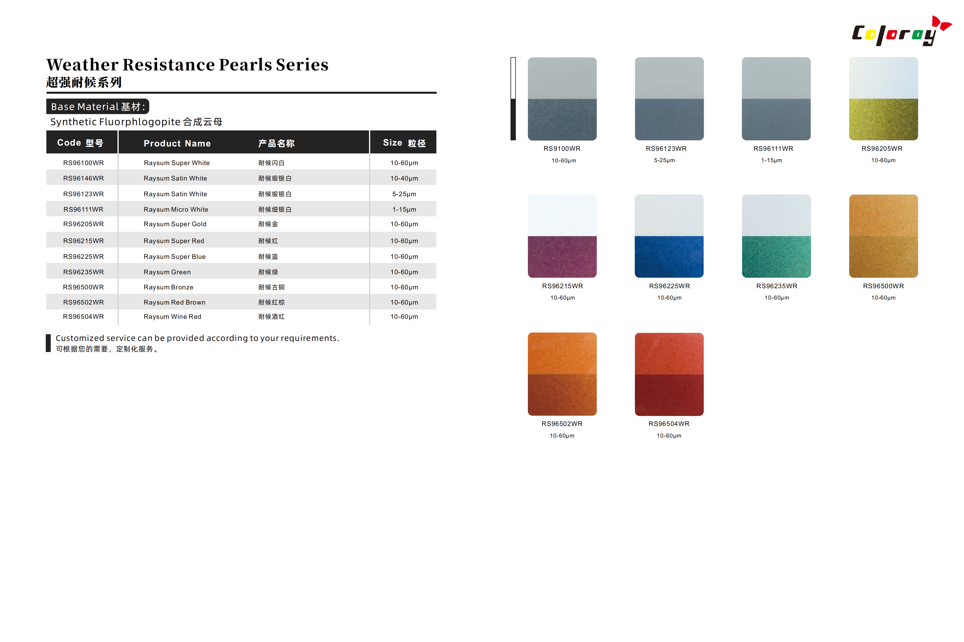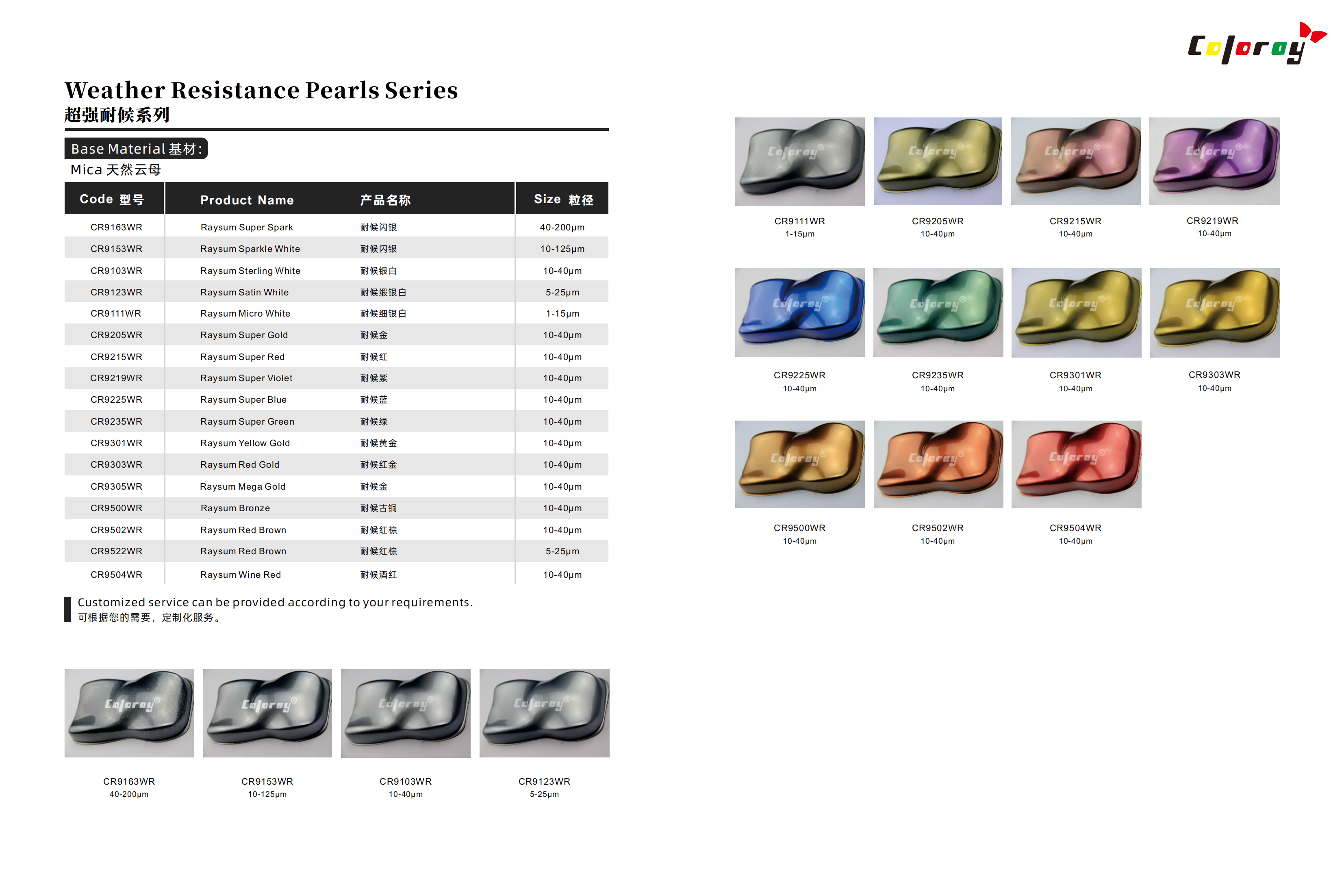 Tá Coloray tiomanta do dhath a sholáthar úsáideoirí a bhfuil raon líocha éifeachtaí acu le feidhmíocht, cobhsaíocht agus comhsheasmhacht bhaisc den scoth; Tacaíocht theicniúil ghairmiúil agus iomaíochas praghsanna a bheith agat. Cibé an bhfuil sé cosmaidí, bratuithe, Plaistigh, dúigh phriontála, leathar, nó an tionscal tógála, is soláthróir agus fadtéarmach é Coloray Comhpháirtí le go leor brandaí idirnáisiúnta, ag cinntiú torthaí comhsheasmhacha agus torthaí uathúla. An Táirge reatha a roghnú ónár lámhleabhar táirge nó seirbhís saincheaptha a lorg, déan teagmháil le do thoil SAM. Déanfaidh ár bhfoireann le taithí ár ndícheall chun do chuid riachtanas a chomhlíonadh agus tú a shásamh. Le cáilíocht, Tacaíocht theicniúil láidir, agus seirbhísí cuimsitheacha, is é Coloray do pháirtí.
